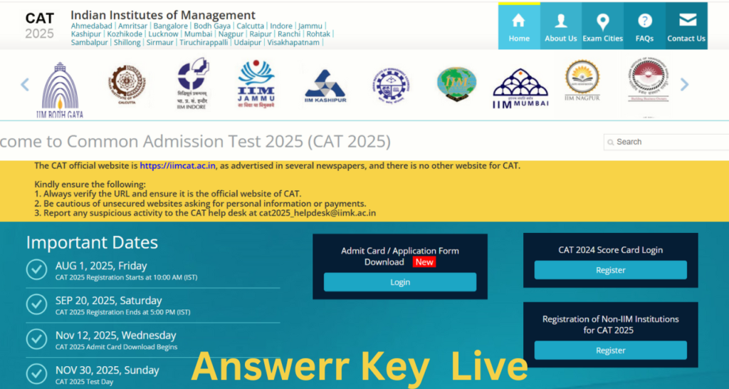 EducationCAT 2025 Answer key Live: CAT का Answer key हुई कैसे करे download जल्दी देखे Vikash / December 4, 2025 CAT 2025 Answer key Live: CAT का Answer key हुई कैसे करे download जल्दी देखे Read Post »